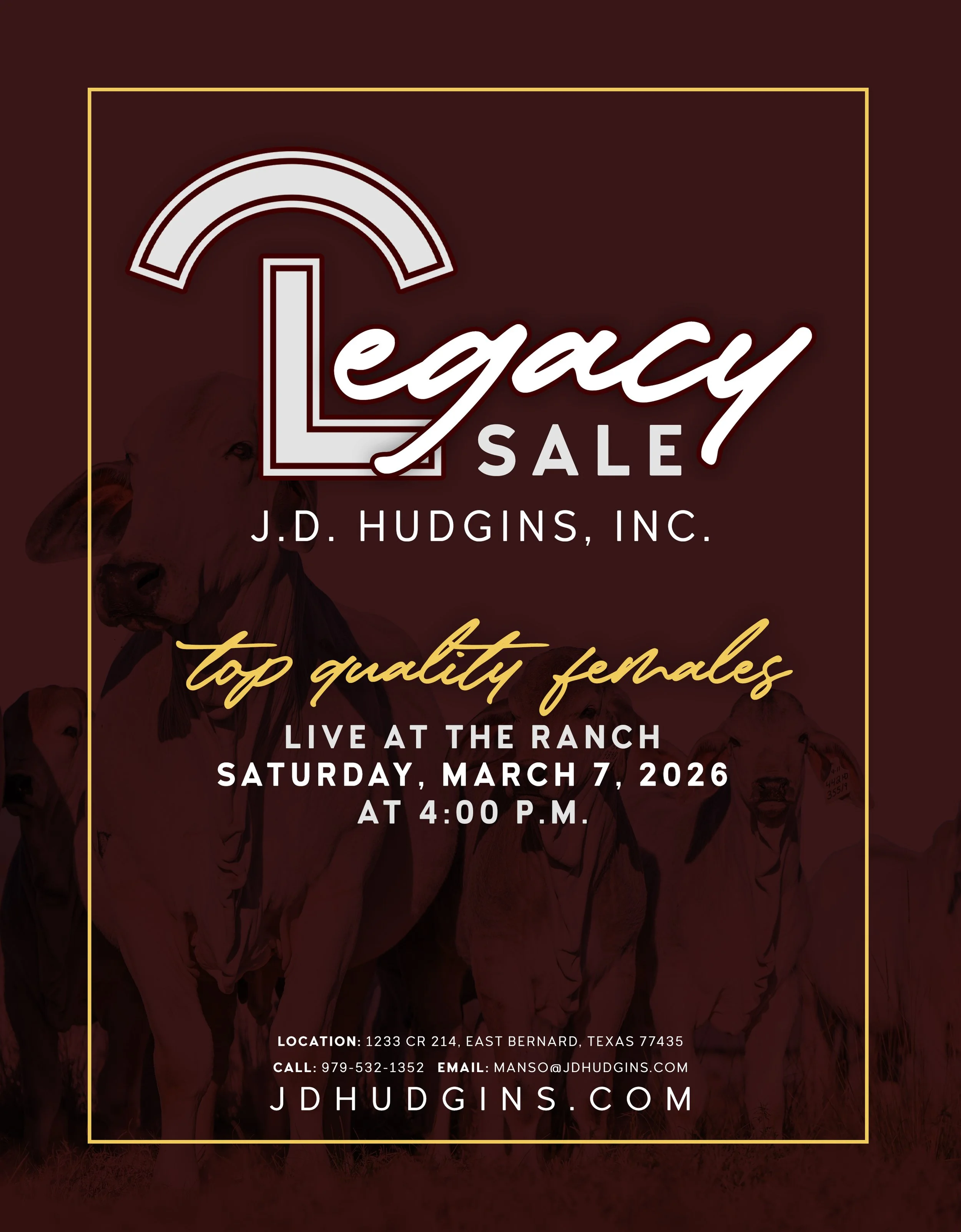 Finding a large selection of Brahman genetics that have been bred for decades to produce predictably can be challenging. At J.D. Hudgins, our family has over a century of experience helping people just like you.